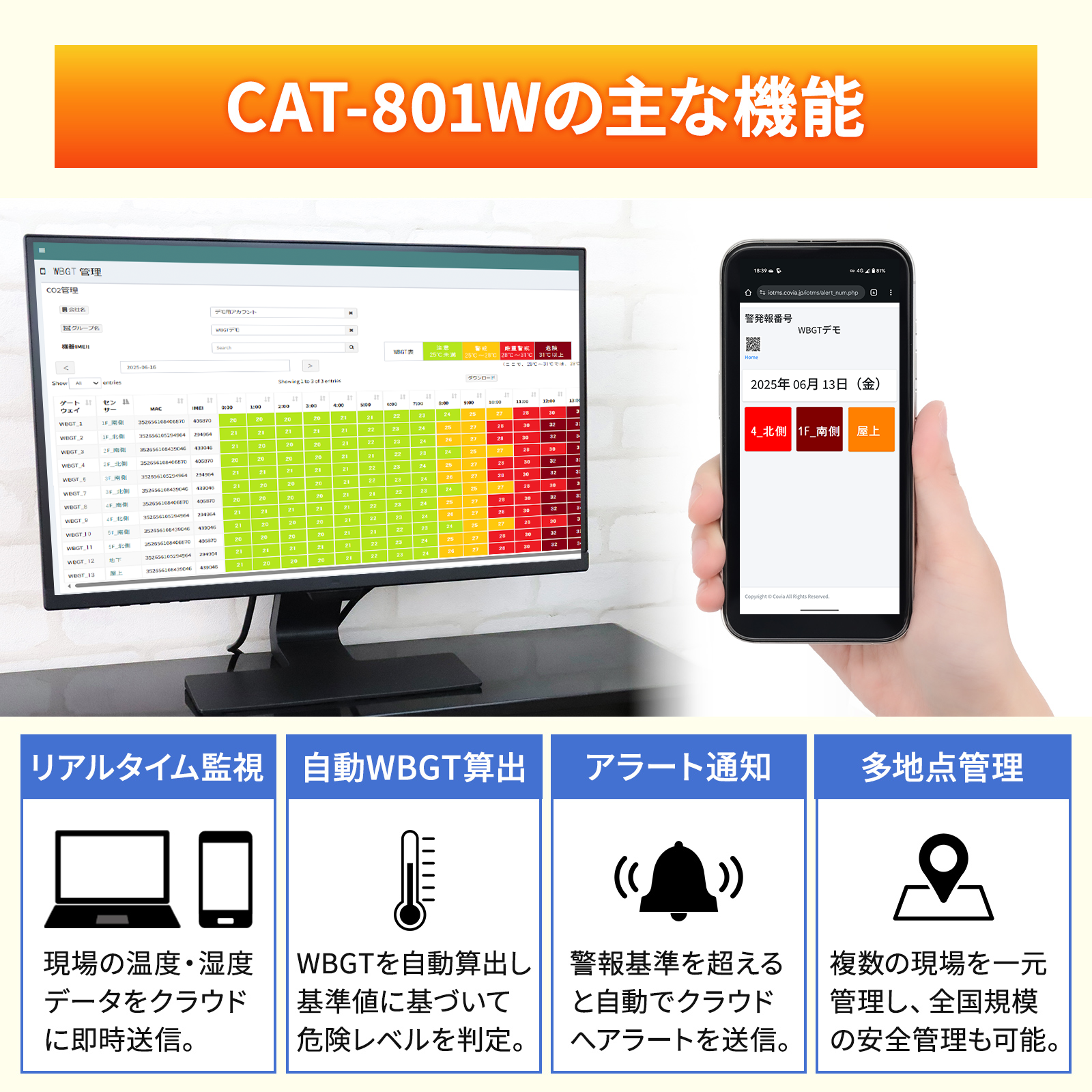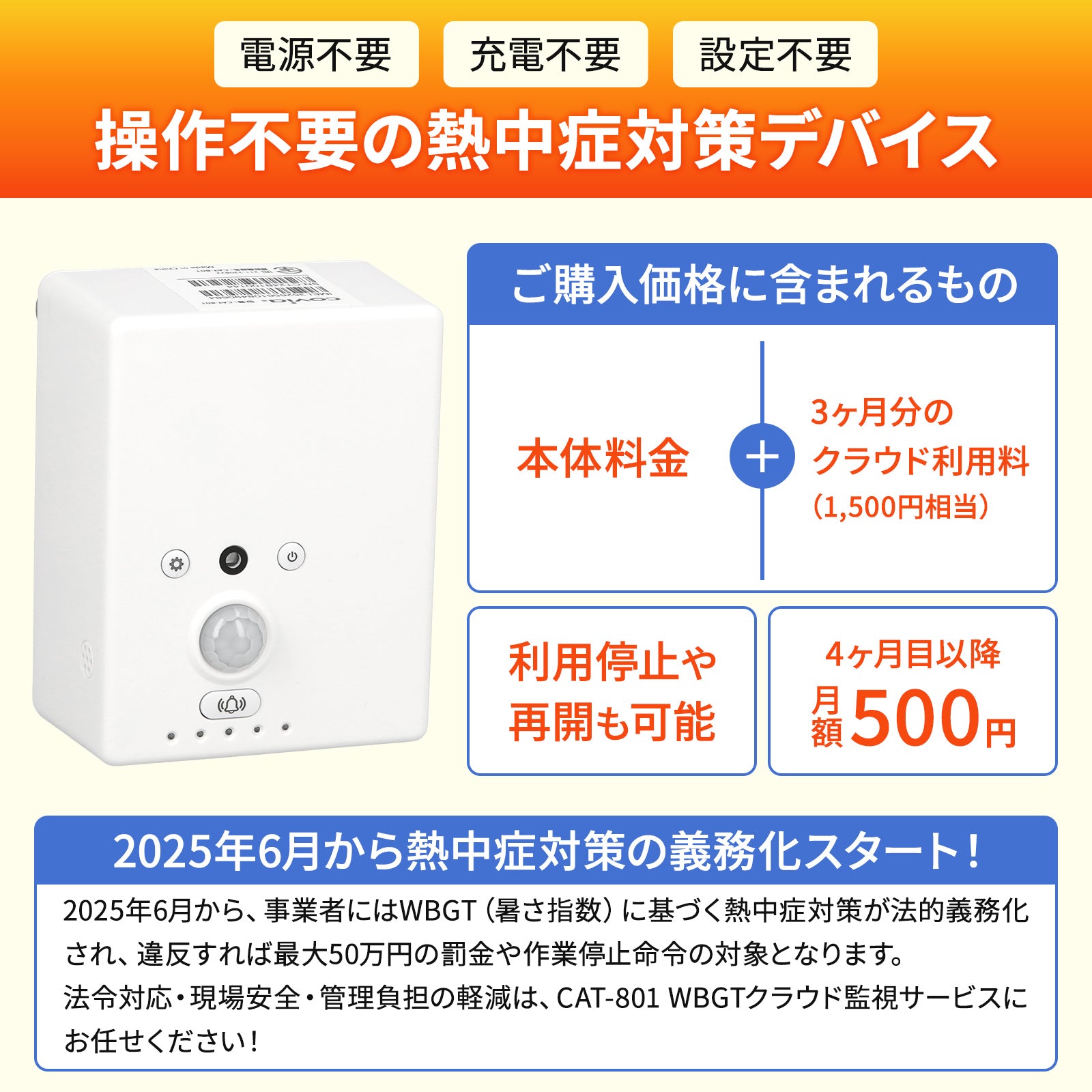 🛒 熱中ナビ CAT-801W|電池5年・通信料 熱中症対策デバイス内蔵(3ヶ月クラウド利用料内蔵)