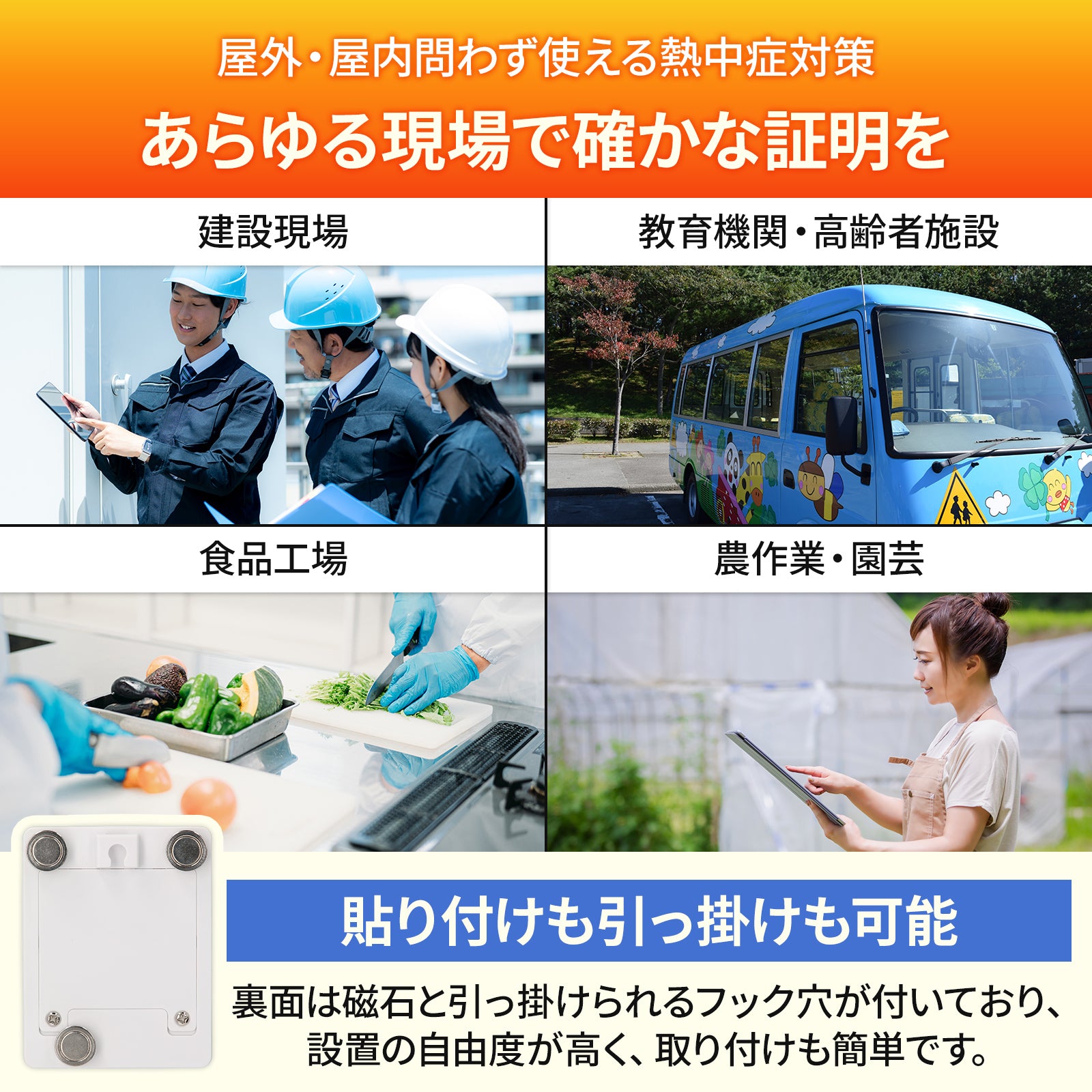 - WBGT(暑さ指数)を随時測定し、クラウドへ自動記録。